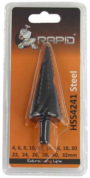 Vrták stupňovitý 4-32 mm do plechu RAPID, krok 2mm, špirálová drážka, MAR-POL