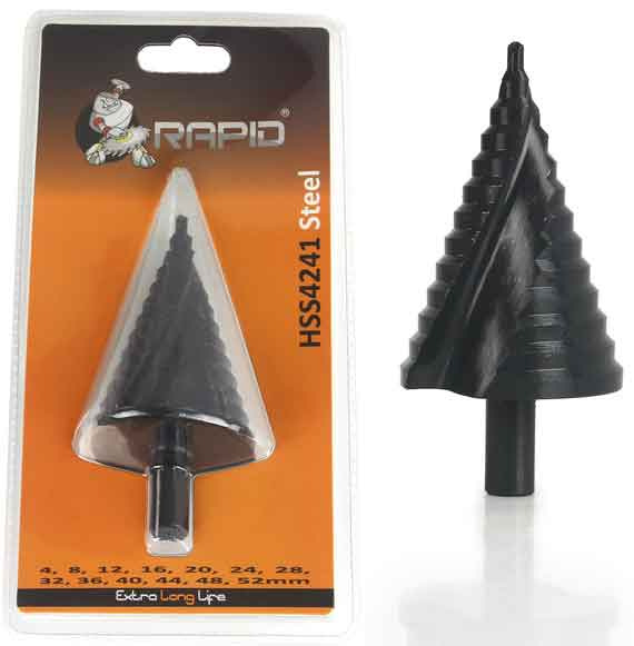 Vrták stupňovitý 4-52 mm do plechu RAPID, krok 2mm, špirálová drážka, MAR-POL