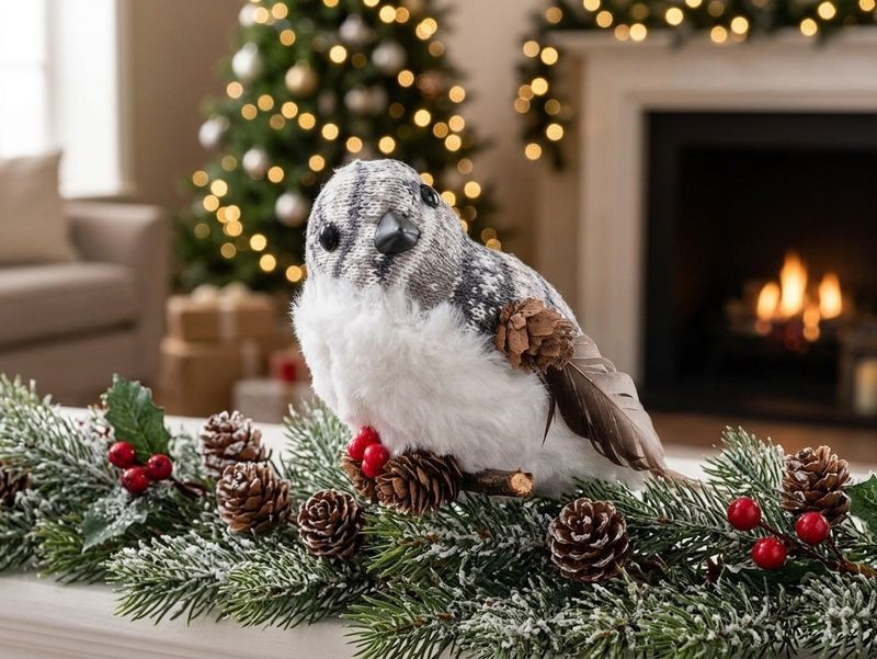 Vtáčik MagicHome Vianoce, 15x10x12.5 cm, bielo - sivý, páperový