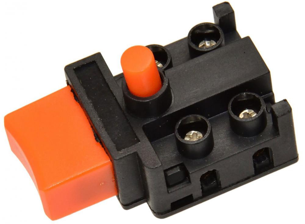 Tlačný spínač pre vŕtačku Celma bez regulácie otáčok, s ochranou proti náhodnému stlačeniu bočným tlačidlom.