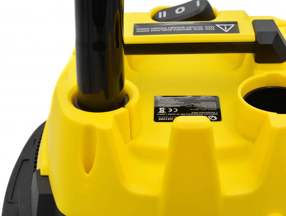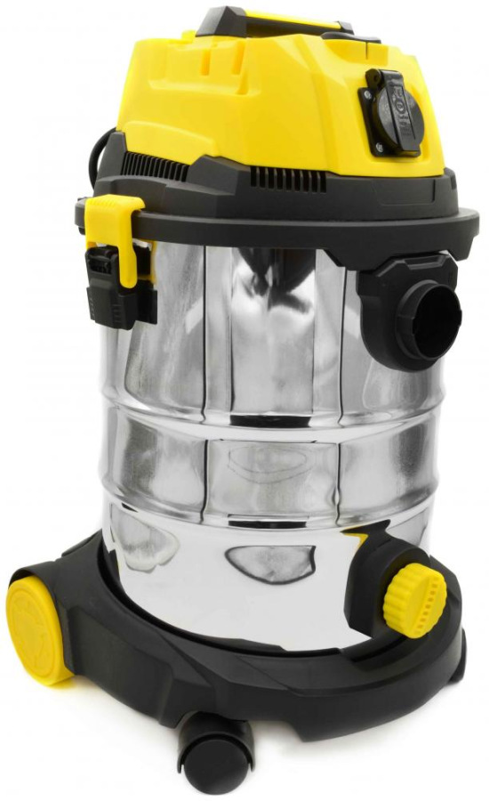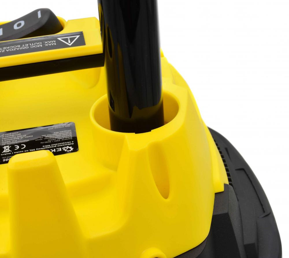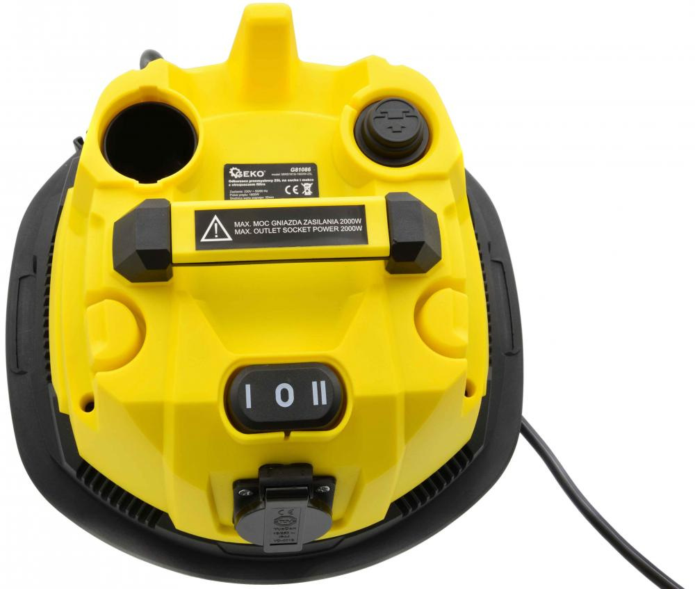 Vysávač priemyselný na sucho a na mokro 25l, so zásuvkou, s oklepom, 1800W, GEKO