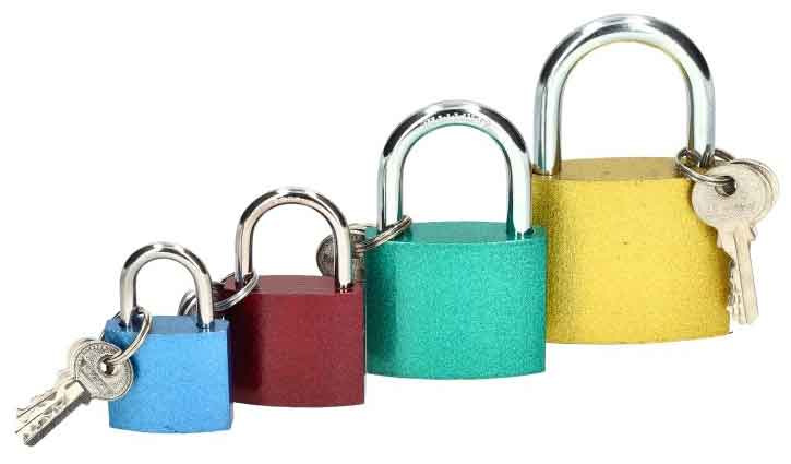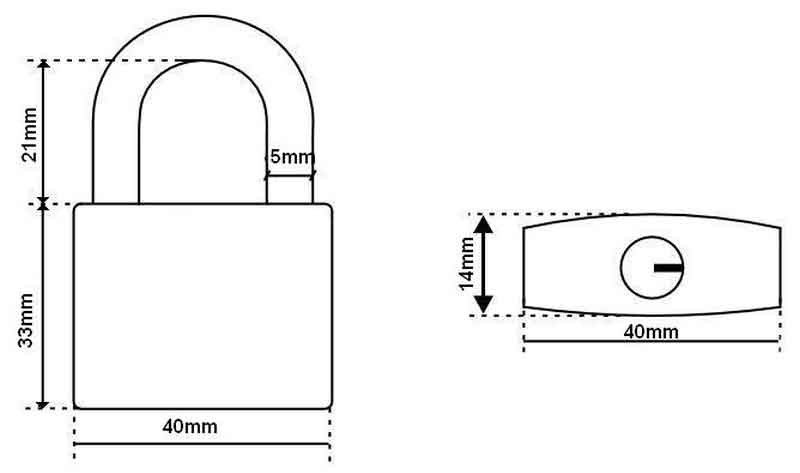 Zámok AB-40mm s liatinovým telom pokrytým kovovým lakom. Majú kalené očko z ocele. Obsahuje 3 patentové kľúče.
