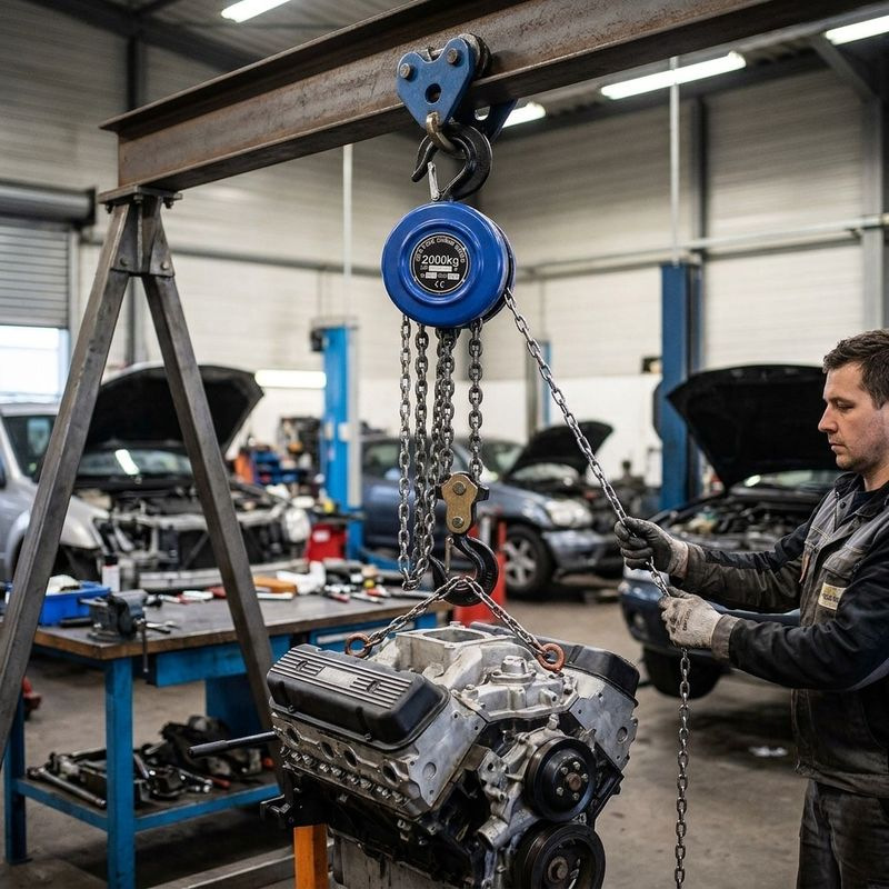 Reťazový zdvihák - kladkostroj je praktický pomocník na zvislé zdvíhanie ťažkých bremien do 2 ton. Obsahuje hák na zavesenie bremena a hák na zavesenie o stabilnú konštrukciu. Ovládanie je jednoduché prostredníctvom reťaze dlhej 2,5 m.