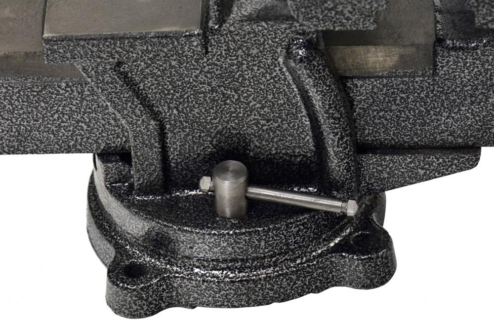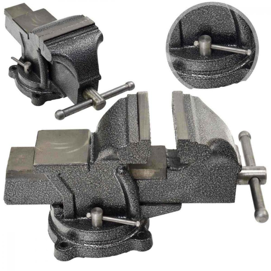 Otočný zámočnícky zverák vyrobený z vysoko kvalitných materiálov. Zverák s oceľovými čeľusťami s protišmykovými priečnymi drážkami. Odolná a pevná konštrukcia umožňuje bezpečne pripevniť vybraný predmet do zveráka a zaručuje jeho dlhú životnosť.